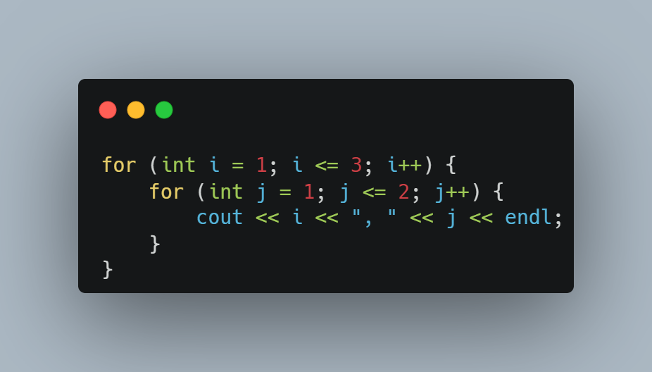 즉, 이 코드는 바깥 반복문은 3번, 안쪽 반복문은 각 반복마다 2번 실행됩니다.