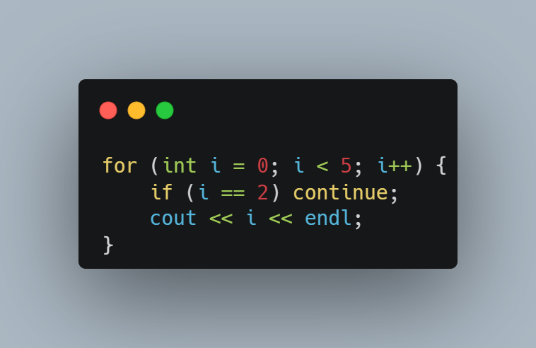 단순히 건너뛰는 것으로, 반복문의 조건이 참이라면 반복문은 계속 수행됩니다.