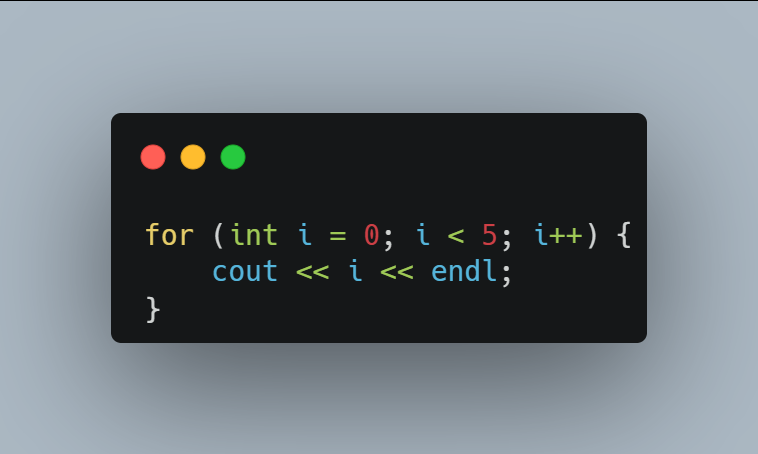 여기서 i = 0은 초기값, i < 5는 조건, i++는 반복할 때마다 실행되는 코드입니다.